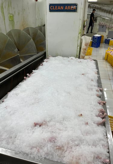 Momen proses pemotongan dan pengemasan ayam segar.
